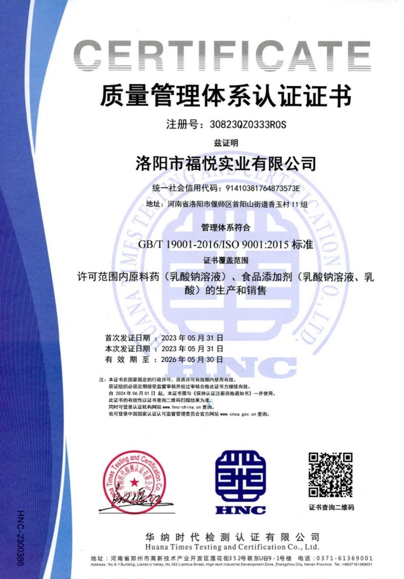 洛阳市福悦实业有限公司(原洛阳市龙涛药业有限公司),位于偃师市工业园区,铁路、公路交通便利。厂区环境优美,大气含尘量低,为药品生产提供良好的自然环境。公司始建于2004年,2005年取得第一个产品(乳酸钠溶液)的批准文号,并于2005年首次取得GMP证书,2015年底新工厂通过新版GMP认证,2016年取得新版GMP证书,证书号:HA20160043。2020年12月,通过GMP符合性检查,编号为HNGMP176,有效期至2025年12月31日。